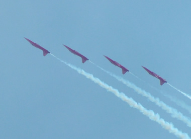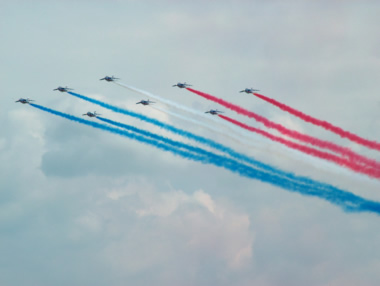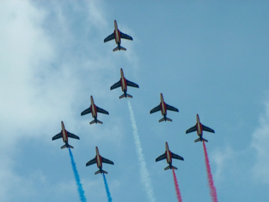 hinter den Maschinen der "Patrouille de France" zum Start. |