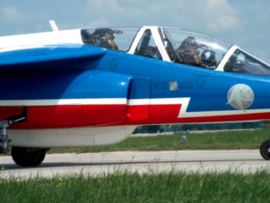 Die "Patrouille de France" beim Anrollen. Ihr Flugzeug ist der