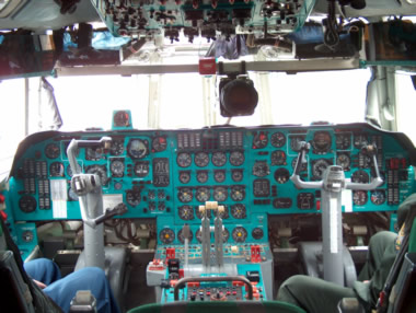 Gut zu sehen (hinter der Stewardess :-) ) der verglaste Rumpfbug in dem