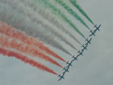 Eng, enger, Freece Tricolori. Sie fliegen mit MB-339 Maschinen. |